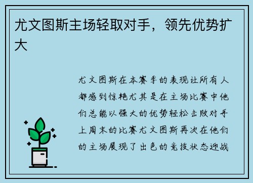 尤文图斯在本赛季的表现让所有人都感到惊艳,尤其是在主场比赛中,他们总能以强大的优势轻松击败对手。上周末的比赛,尤文图斯再次在他们的主场展现了出色的竞技状态,迎战对手时,球队从一开始就占据了压倒性优势。最终,尤文图斯以一场大胜收场,将他们的领先优势进一步扩大,向冠军宝座迈出了坚实的步伐。